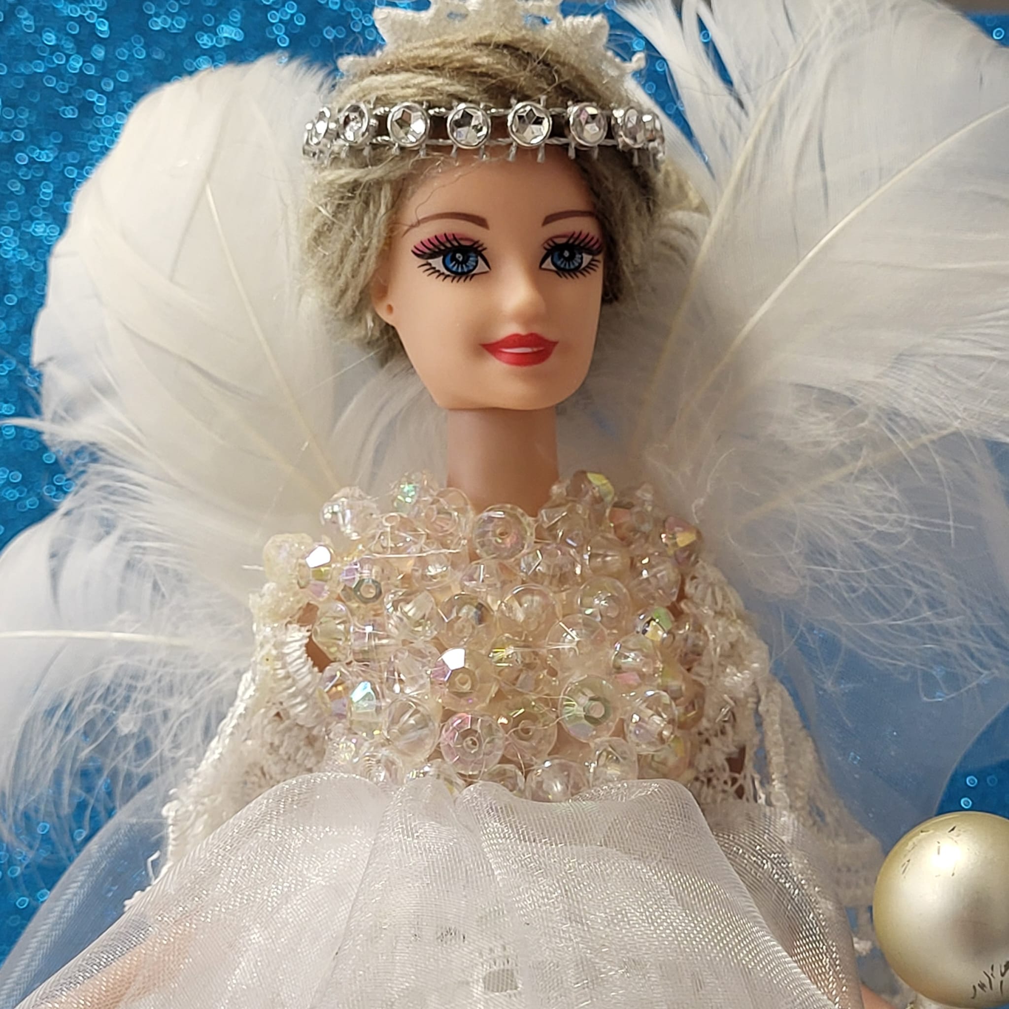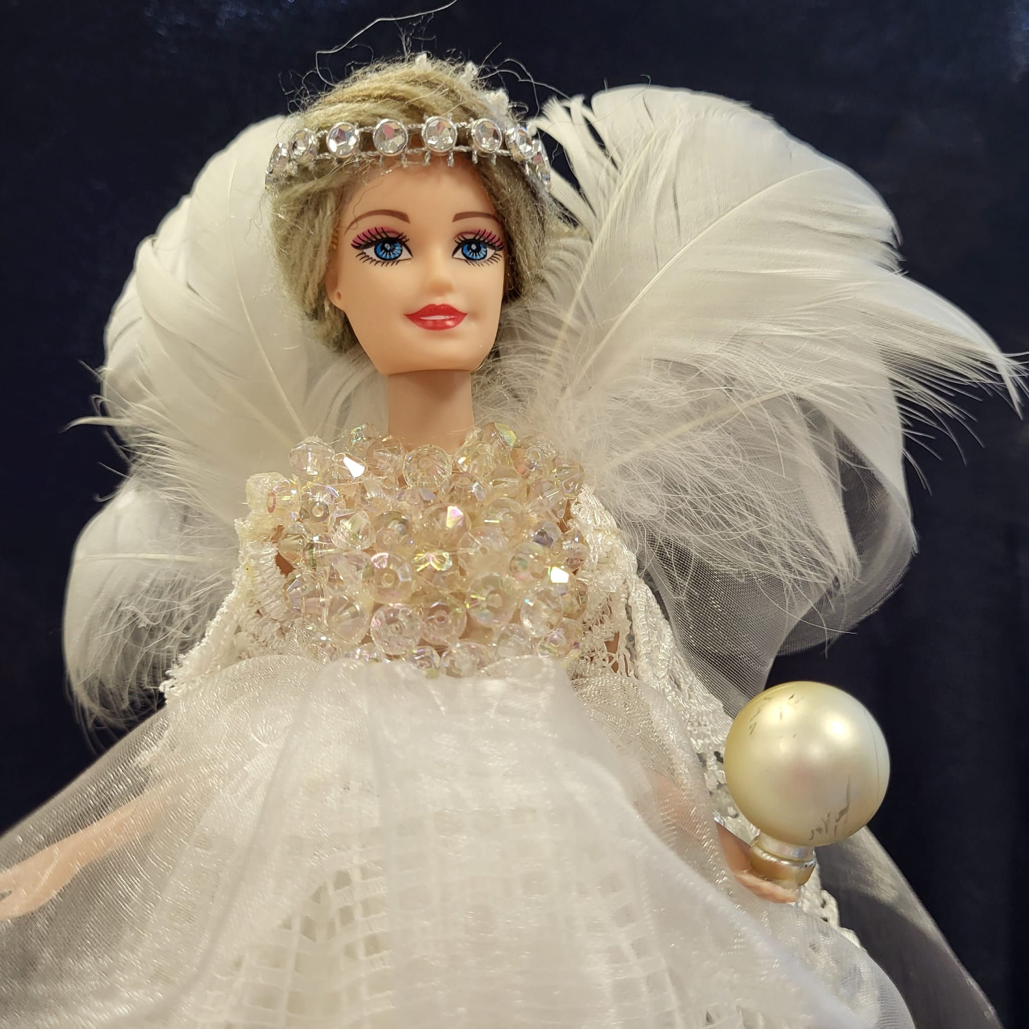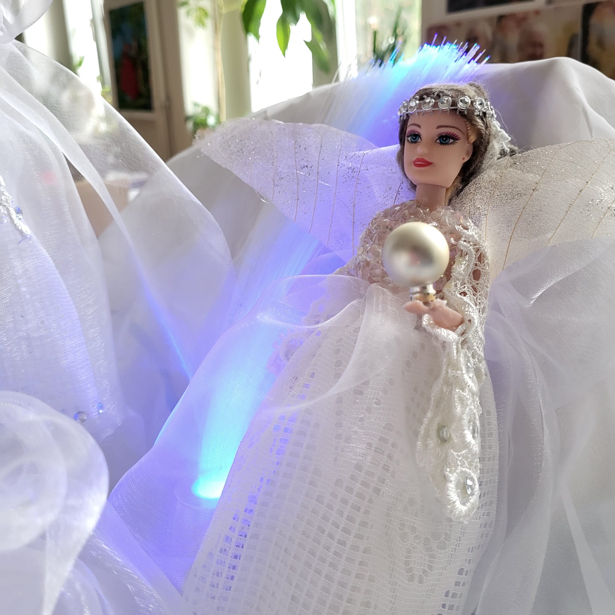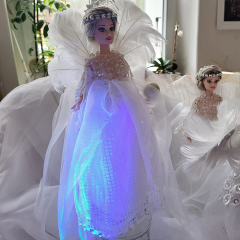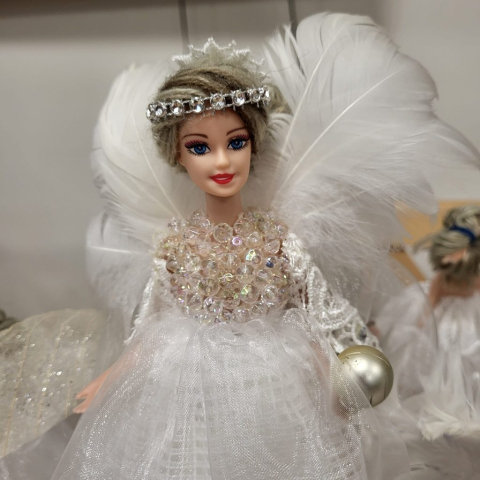 Anioły zostały ręcznie wykonane z dodatkiem koronek, cyrkonii oraz naturalnych piór.
