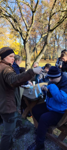 Po zakończeniu grzybobrania odpoczywaliśmy przy wspólnym ognisku. Nie zabrakło rozmów, śmiechu i dzielenia się swoimi „łupami”. Dla wielu była to nie tylko okazja do relaksu na świeżym powietrzu, ale też możliwość nauki i integracji w przyjaznej atmosferze.