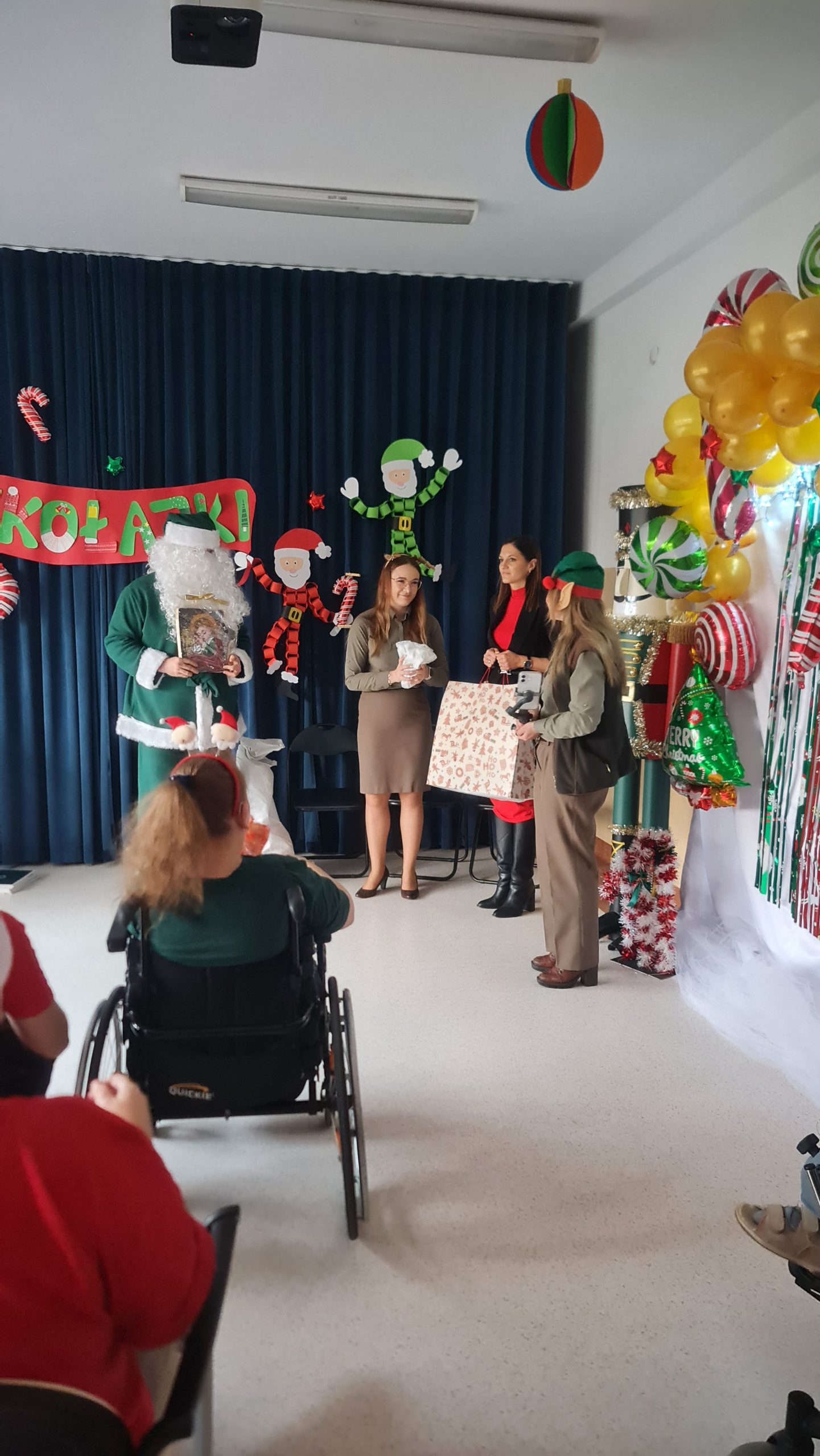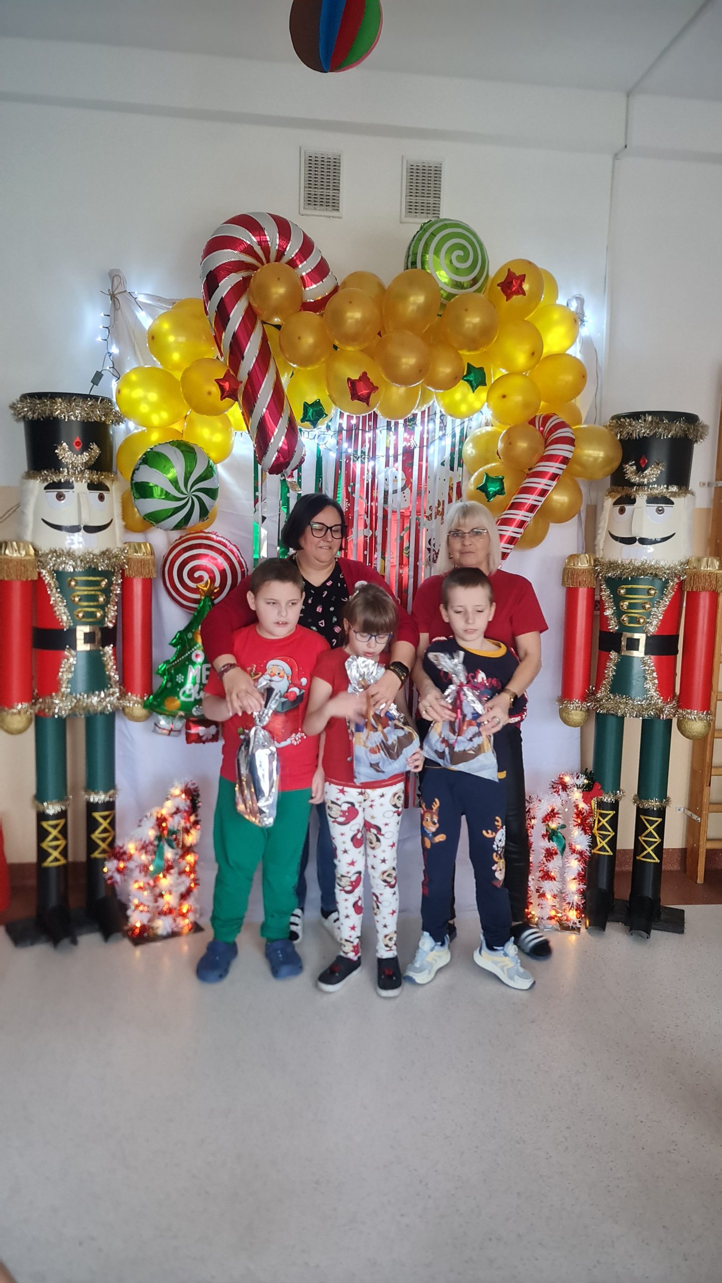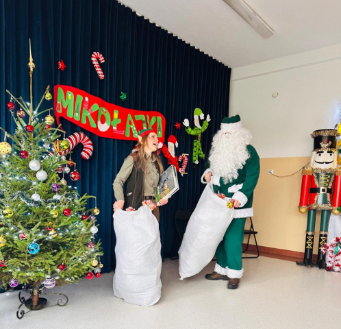 Z okazji Mikołajek odwiedził nas, jak co roku, zielony Mikołaj z Nadleśnictwa Rokita. Tym razem przybył wraz ze swoim reniferem oraz pomocnym elfem. Zanim rozpoczęło się rozdawanie paczek, dzieci wzięły udział w zabawnej grze polegającej na odgadywaniu nazw zwierząt, co wywołało wiele radości i uśmiechów.