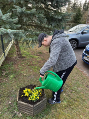 Niedawno przeprowadziliśmy zajęcia praktyczne podsumowujące nasze wiosenne prace w ogrodzie. Kilka dni wcześniej uczniowie grupy przysposobienia do pracy wraz z grupą szkolną posadzili kwiaty cebulowe. Dzisiaj natomiast w donicach przed ośrodkiem zawitały urocze bratki.