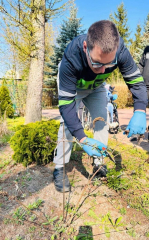 Nastał kwiecień i pora wiosennych porządków i przycinania krzewów. Uczniowie starszej grupy szkolnej i przysposabiającej do pracy chwycili sekatory i ruszyli w budleje posadzone jesienią. Również w ramach zajęć przysposobienia do pracy plewili z chwastów rabatę z bergenią.