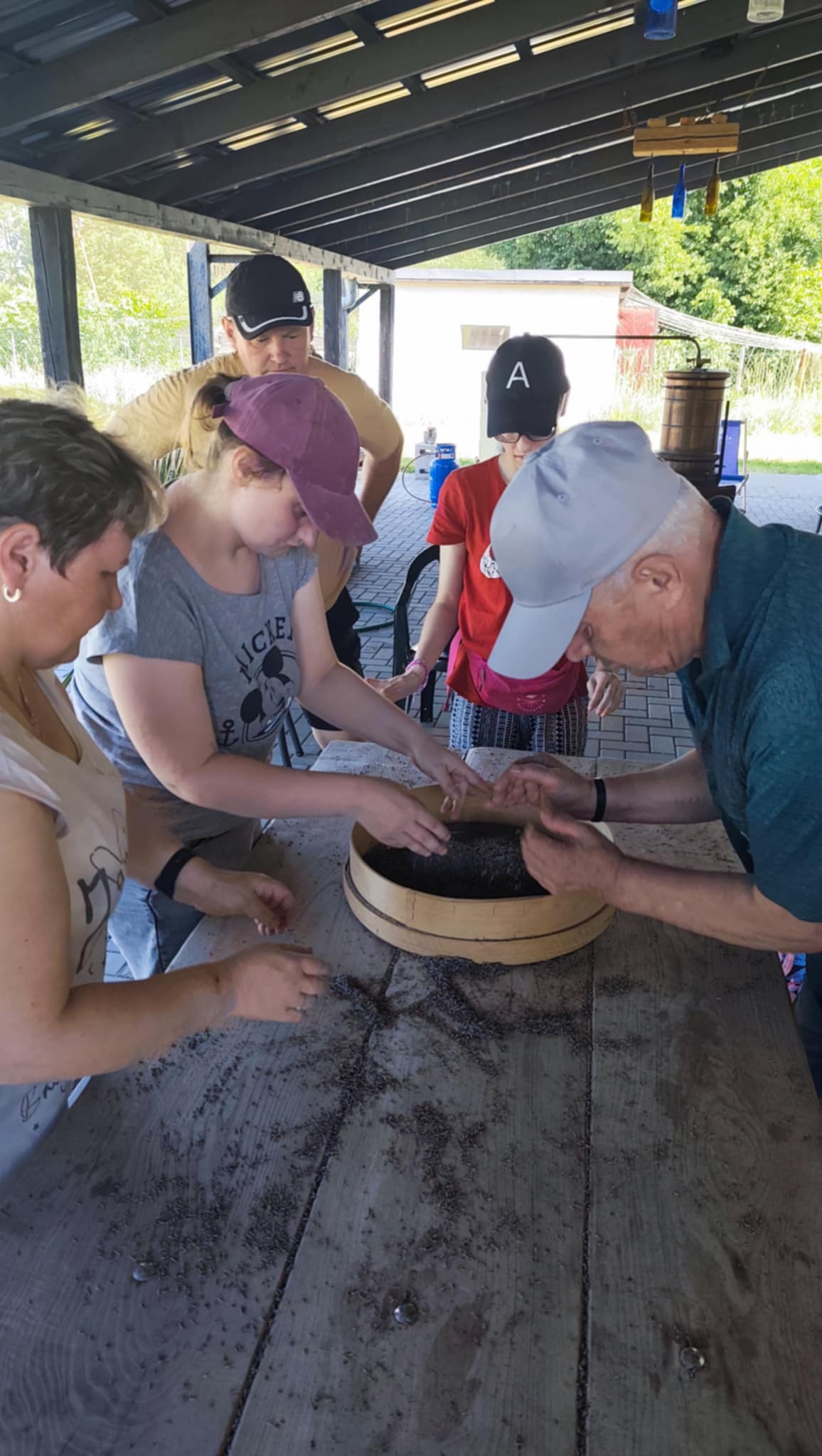 Plantacja znajdująca się we wsi Kodrąbek ugościła nas niezwykle serdecznie proponując szereg ”lawendowych różności” podczas, których poznaliśmy proces destylacji lawendy, pozyskiwania suszu, robiliśmy woreczki zapachowe, lawendową sól do kąpieli z naturalnym olejkiem lawendowym na bazie soli Kłodawskiej. Lawendowe warsztaty pobudziły zmysły węchu, dotyku oraz wzroku.