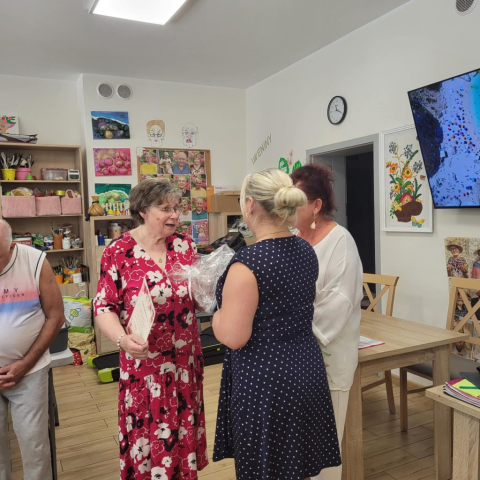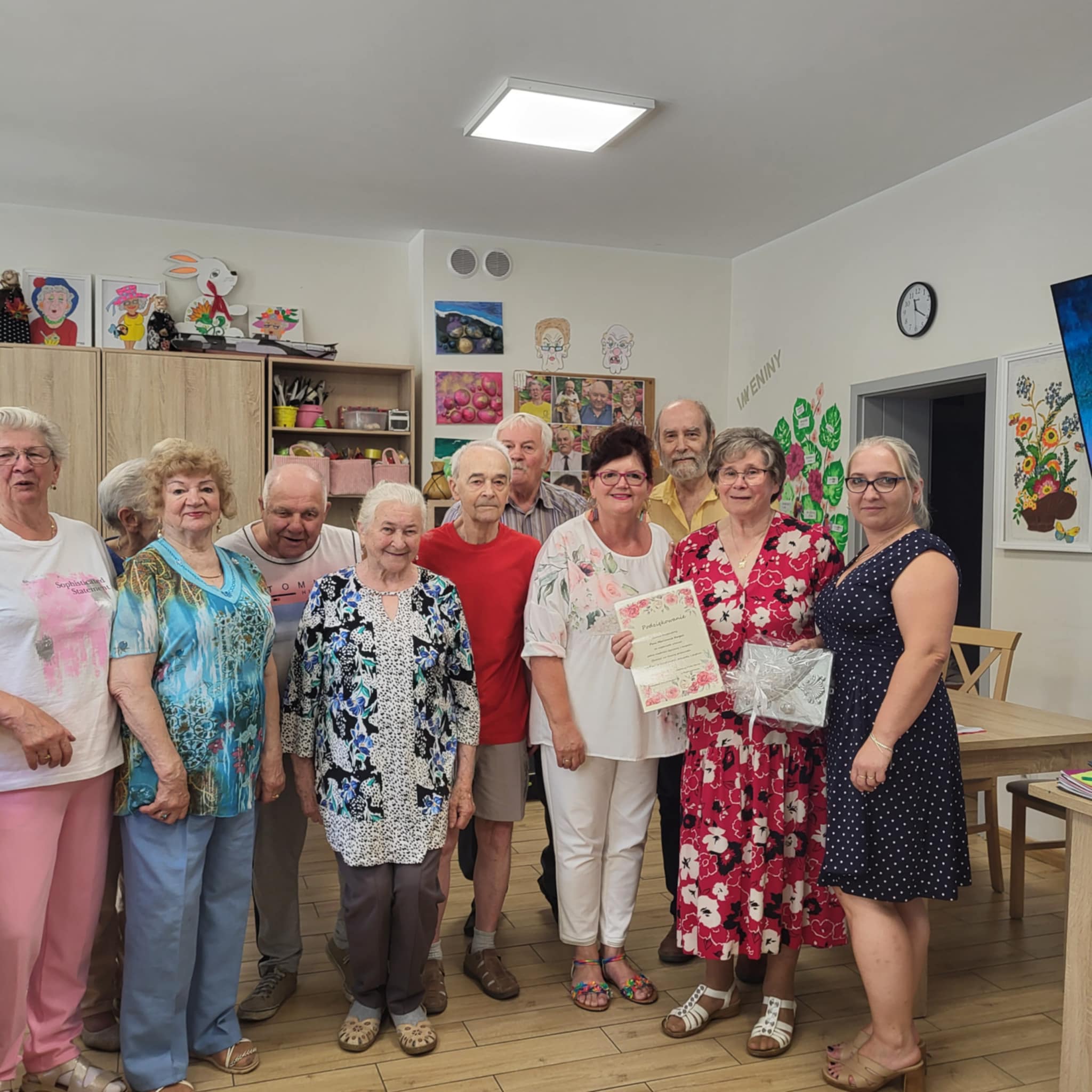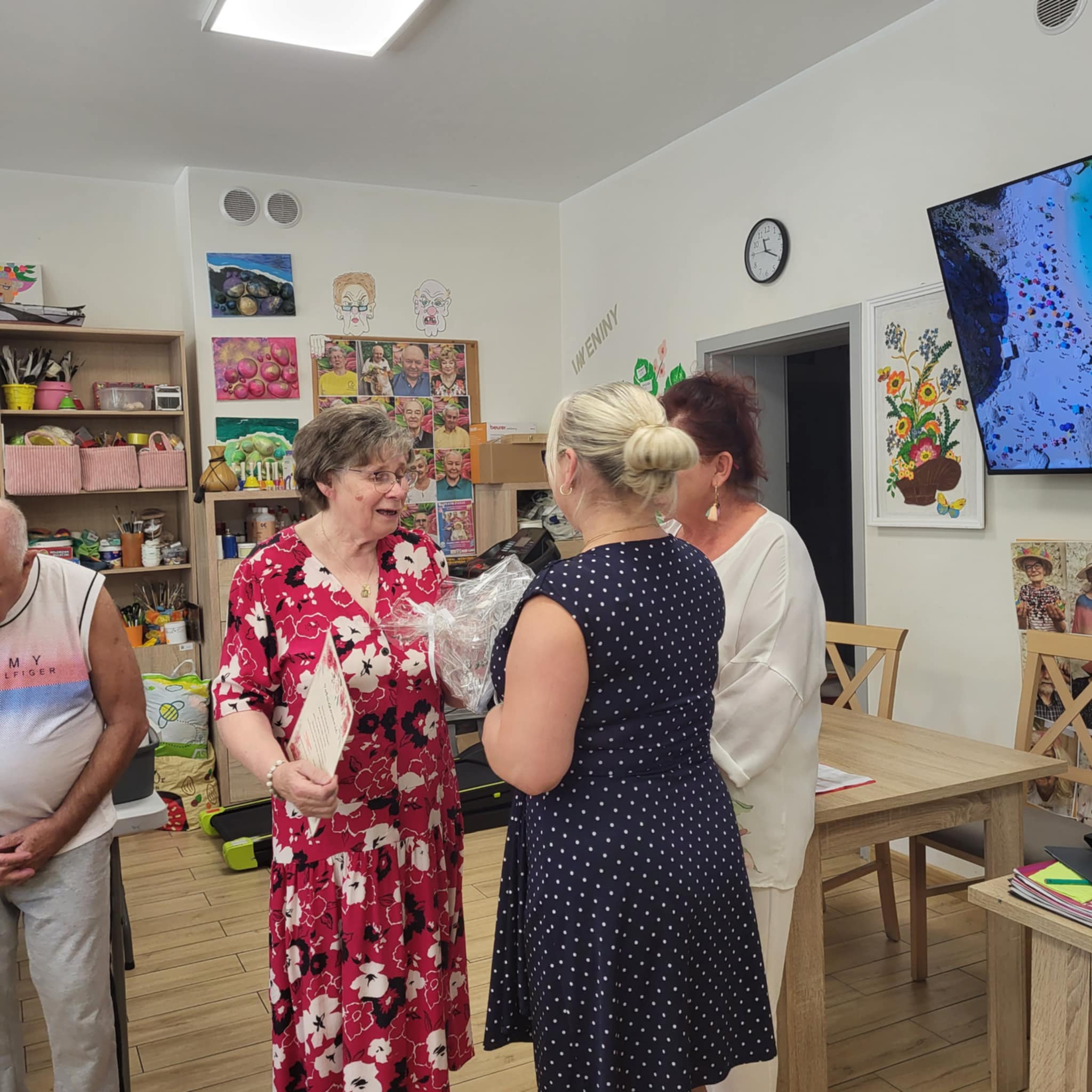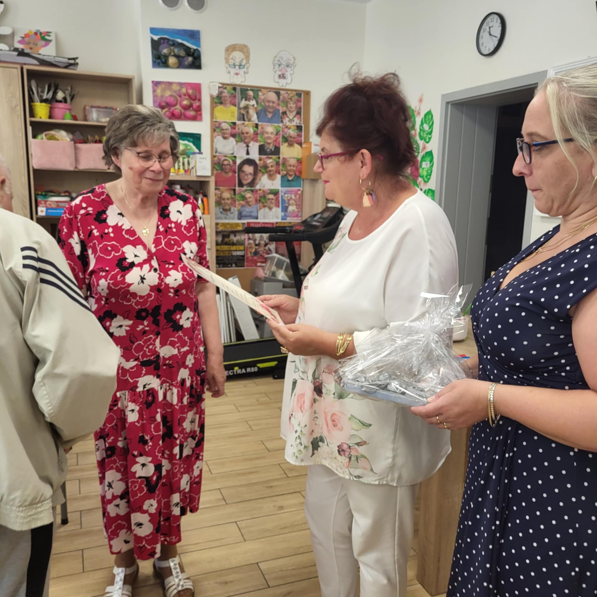 Na koniec tego niezwykłego spotkania uczestnicy Klubu Senior+ podarowali pani Mariannie własnoręcznie wykonany obraz i dyplom .Otrzymaliśmy kilka egzemplarzy najnowszego tomiku wierszy.