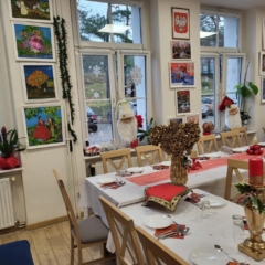 Pięknie udekorowane stoły, oświetlona choinka, żłobek, anioły i świece. W wydarzeniu udział wzięli przedstawiciele gminy i Stowarzyszenia.
