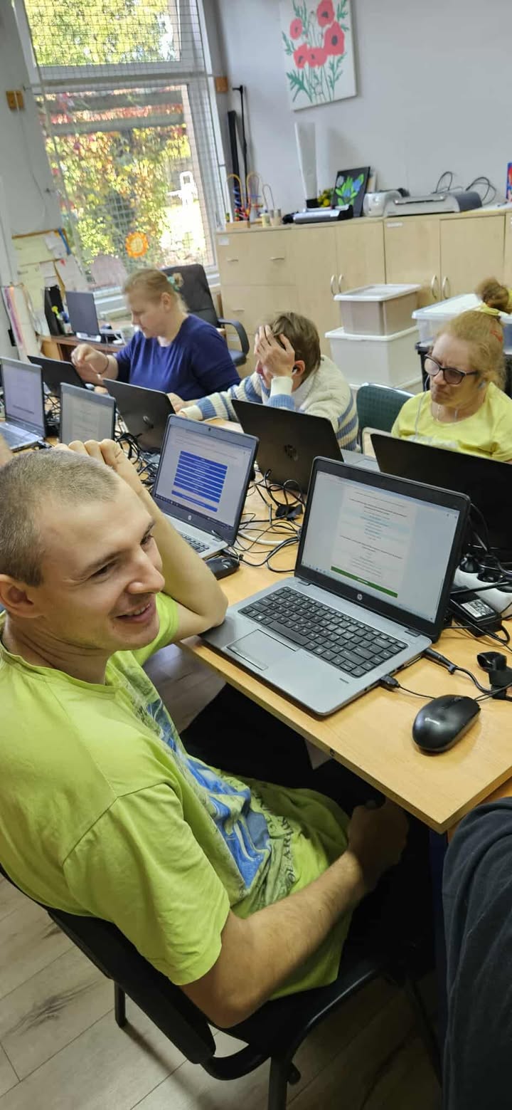 Uczestnicy Warsztatów Terapii Zajęciowej biorą udział w kilkudniowym szkoleniu realizowanym w ramach projektu „e-Obywatel – rozwój kompetencji cyfrowych mieszkańców województwa zachodniopomorskiego”.