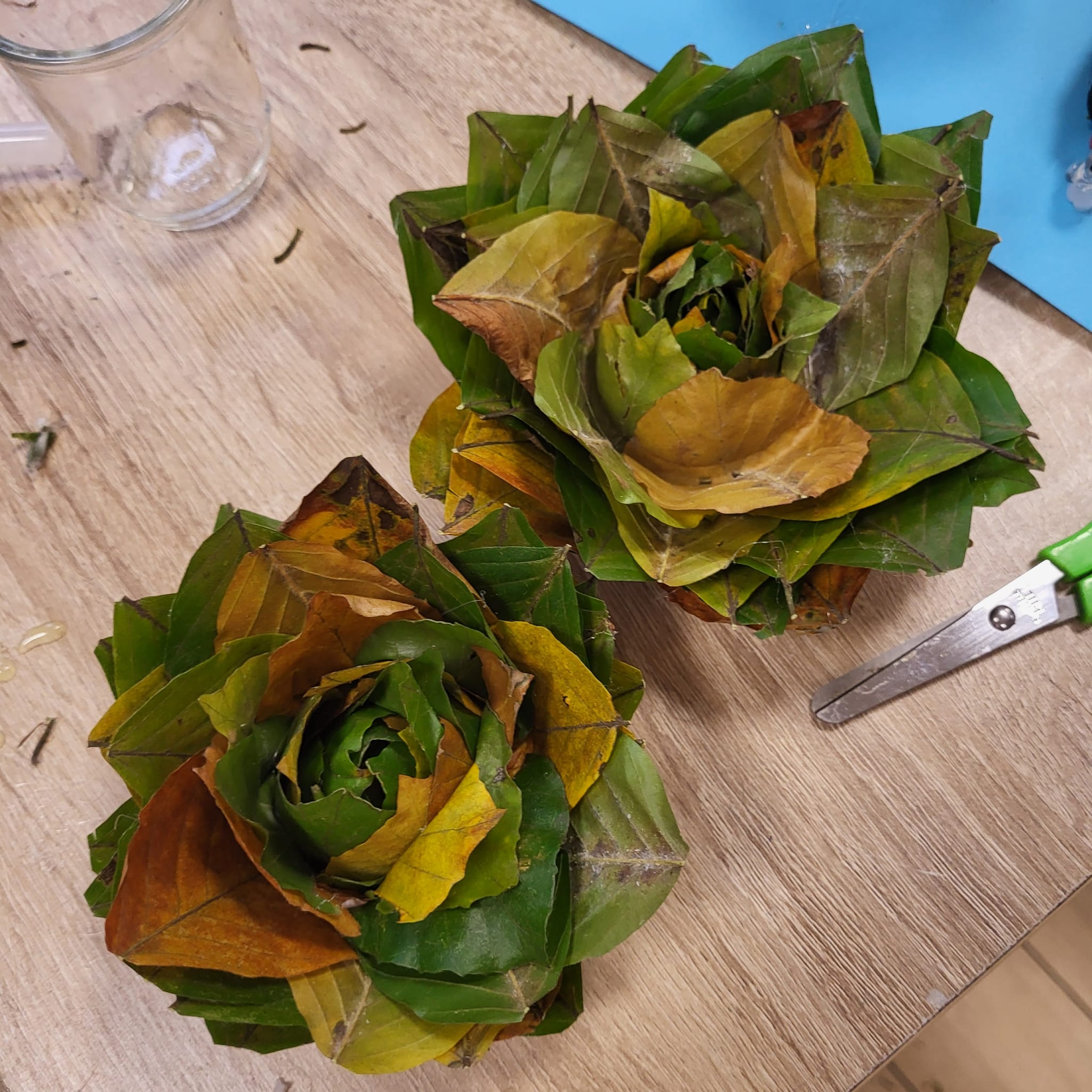W trakcie spacerów zbieramy różnorodne „dary jesieni”, aby w trakcie zajęć wykorzystać je do tworzenia przedmiotów dekoracyjnych i funkcjonalnych. Efektem tych działań jest konkretny wytwór pracy rąk.