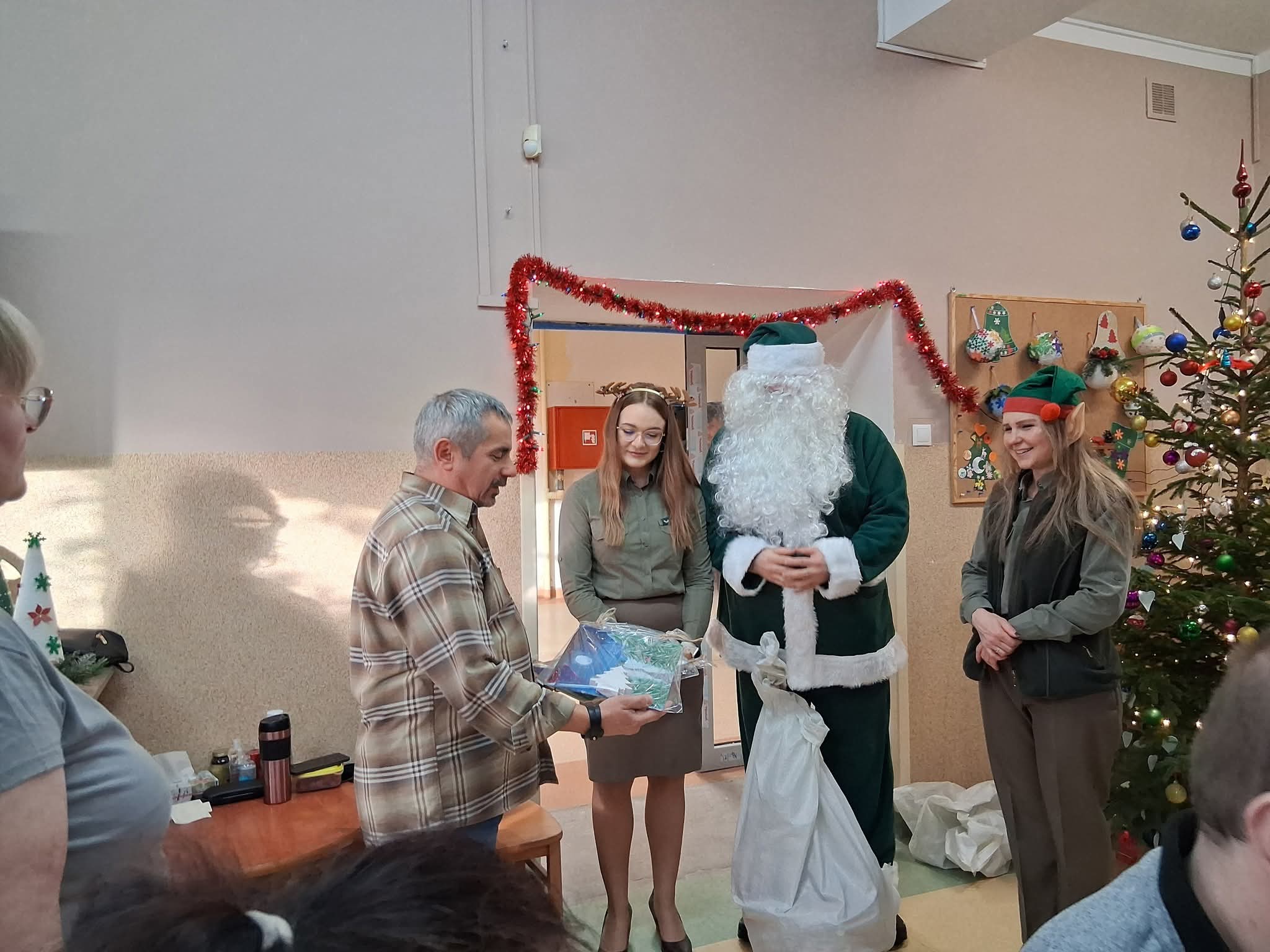 Odwiedził nas dzisiaj Zielony Mikołaj, z równie Zielonymi i wesołymi – Elfem i Reniferem!!!. Przyszli do nas z pudełkiem pełnym ciekawych zagadek i workiem pełnym pięknych prezentów. Swoją wizytą sprawili nam dużo radości, więc i my obdarowaliśmy ich drobnymi upominkami.
